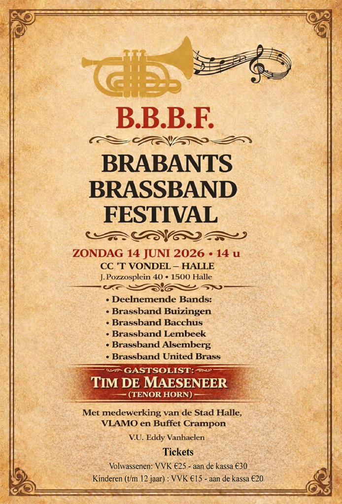 Vijf top Brassbands, een gerenommeerde solist en een unieke muzikale totaalbeleving: het Brabants Brassband Festival brengt het beste uit de hafabra-wereld samen in het hart van Halle.